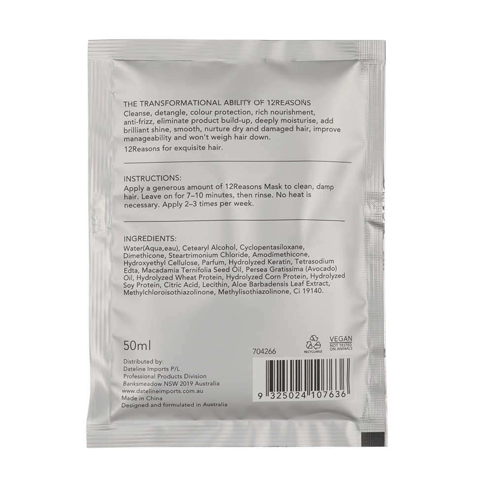 12Reasons Keratin Hair Treatment Sachet is perfect for on-the-go, travel or an introduction to the brand. Generous 50ml size provides 2-3 applications, an ideal companion anywhere, anytime. Nourish and deeply condition distressed hair with moisturising and smoothing argan oil. Hydrating coconut and avocado oil add extra moisture, leaving dry and lacklustre hair looking luminous. Revitalising, moisturising and deeply conditioning, 12Reasons Argan Oil Hair Mask brings vital hydration back to dry hair in only seven minutes!