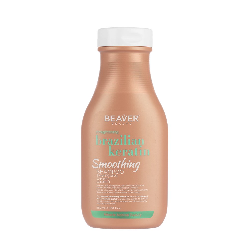 Seeking smoothness, reduced frizz and repair? Beaver Brazilian Keratin Smoothing Shampoo 350ml is the solution. This keratin smoothing formula is powered by coconut oil and keratin protein to deliver a salon-finish look to hair. Dry, damaged hair is left silky smooth, transformed with strength and manageability. Good riddance to pesky flyaways and welcome to nourished, fortified strands. Gently cleanses while adding plenty of shine.