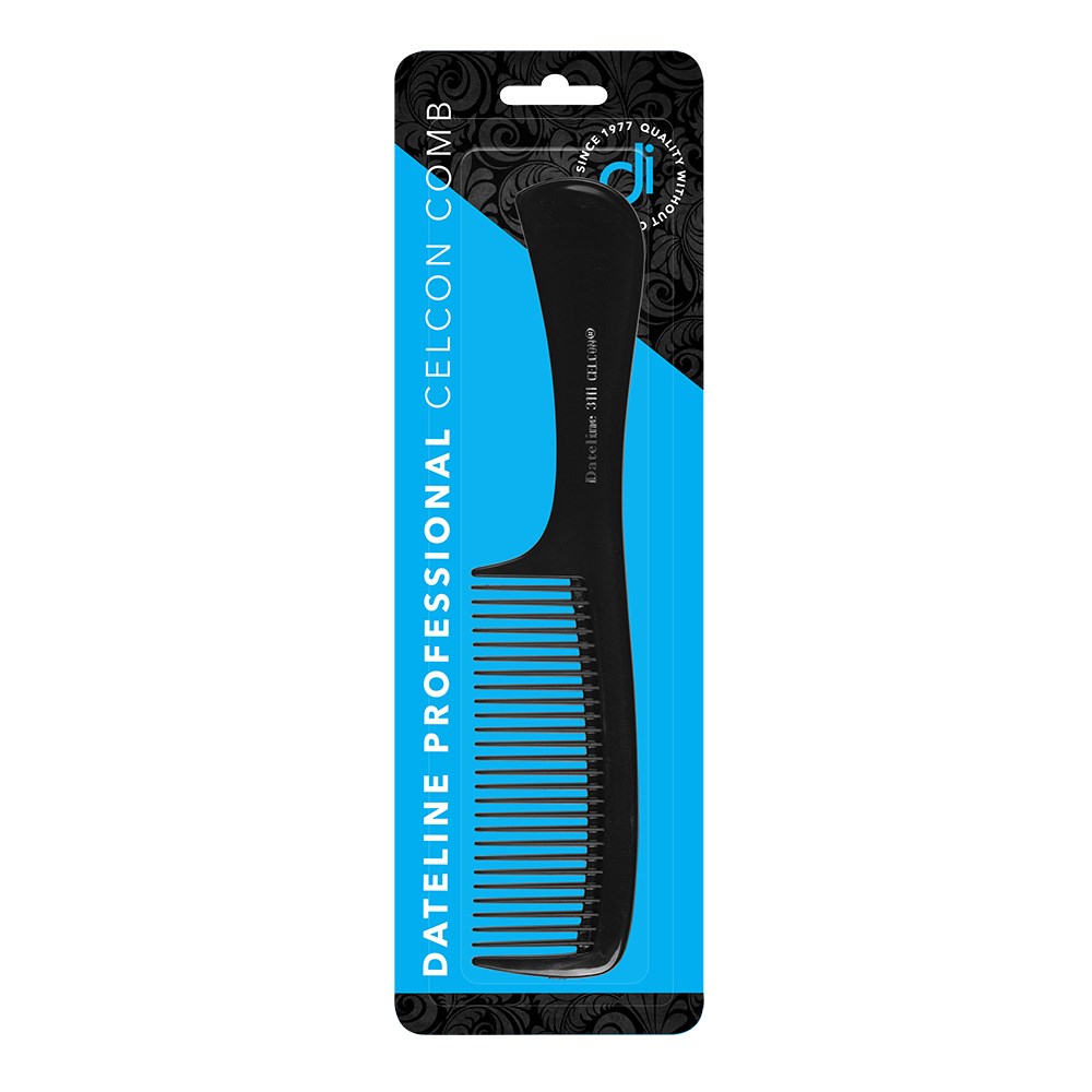 Quality without compromise since 1977. Dateline Professional Black Celcon 3111 Basin Comb is strong, flexible and unconditionally guaranteed against breakage*. With super-smooth teeth which effortlessly glide through all hair types, this comb is the perfect professional companion. Ideal for use with chemicals. Heat resistant and suitable for blow-drying. Perfect for detangling wet or dry hair, detangling after shampooing, combing through toners, combing out teasing or waves and combing colours through hair for even saturation. Designed by professional stylists and used worldwide.