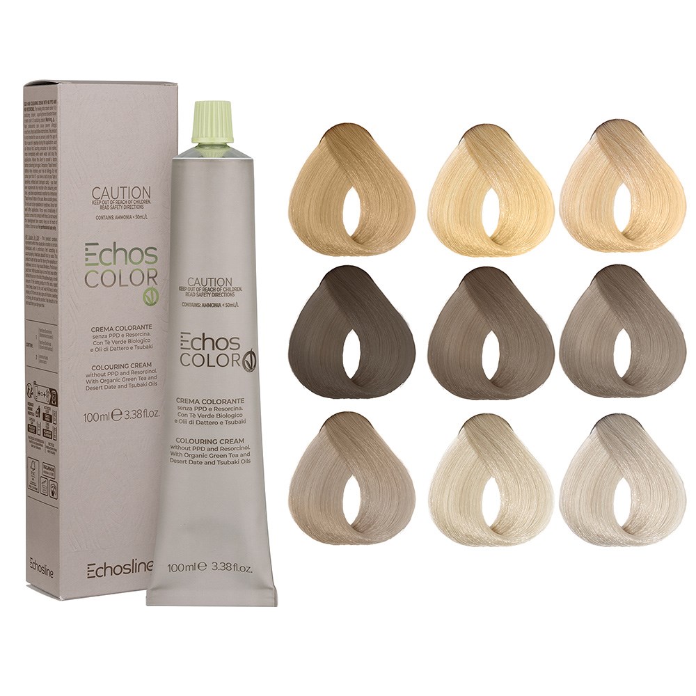 Incredible depth and longevity with reduced impact. Echos Color Vegan Hair Colour 10.12 Platinum Blonde Cold Irise respects professionals, consumers and the environment. This 100% vegan colouring cream is formulated without paraphenylenediamine (PPD) and resorcinol. Rich, long-lasting permanent hair colour boosted by green tea extract for longevity, desert date oil for revitalisation and Tsubaki oil for shine. Made in Italy, this is elite hair colour turned vegan.