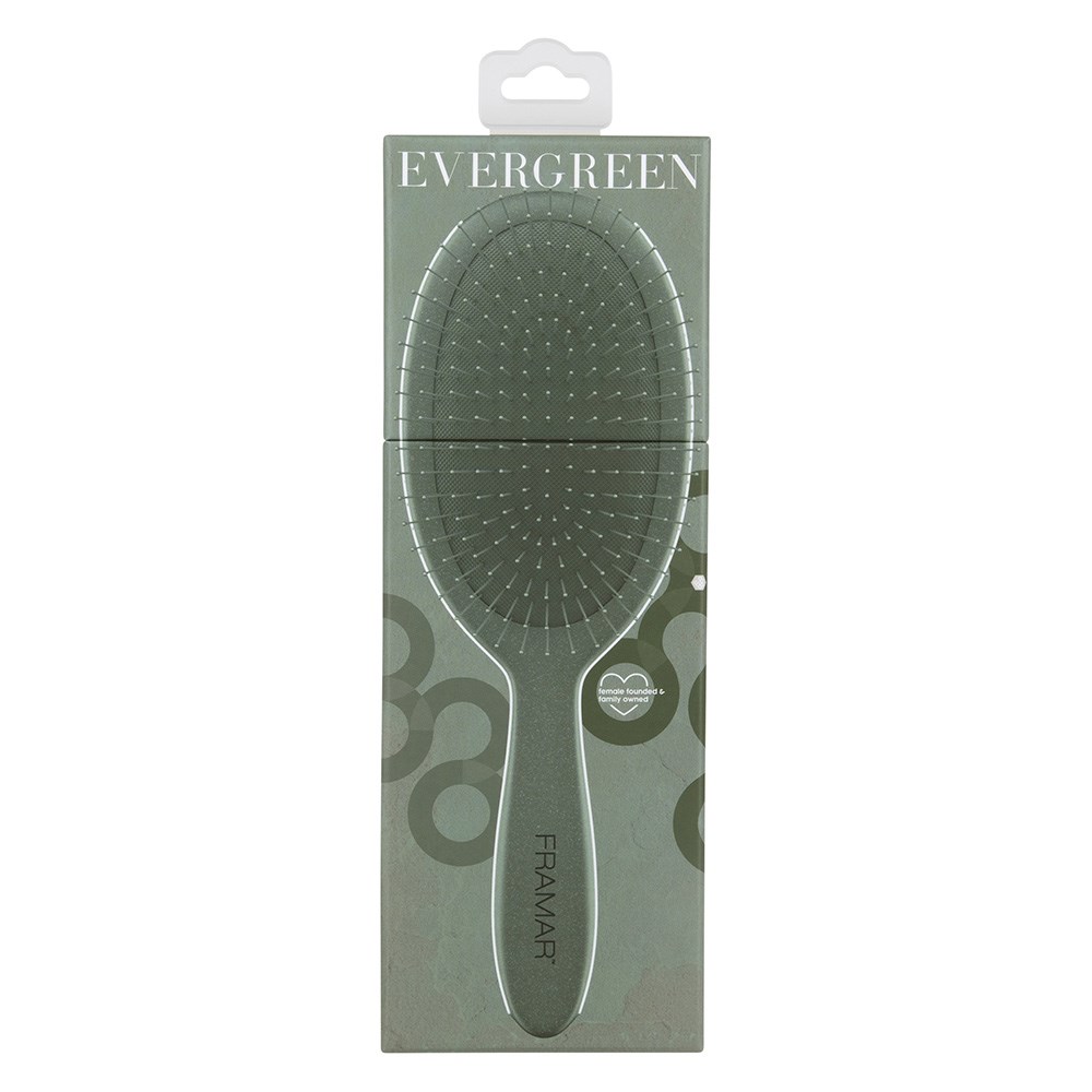 Green with envy! With peaceful, earthy tones, Framar Sage collection suits your neutral aesthetic beautifully. Framar Detangle Hair Brush Sage Evergreen is your new favourite. Effortlessly detangle wet or dry hair with ease. Ideal for all hair types, including wigs and hair extensions. Flexible bristles deliver pain-free brushing. Not only a detangler, this brush is also great at brushing colour or toner through hair for even application or assist in styling, such as brushing out curls.