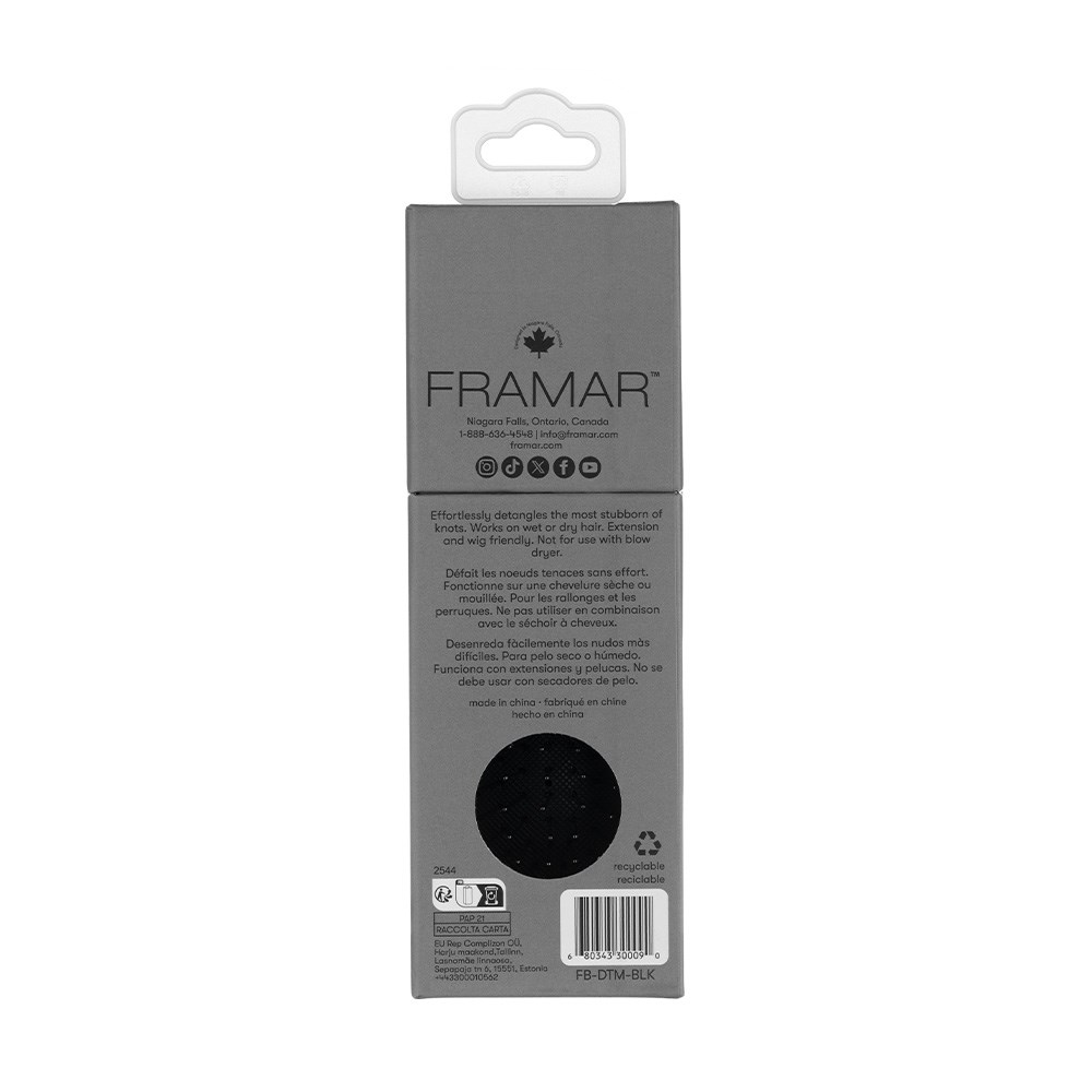 Major results in a pint-sized package. Designed for on-the-go styling, Framar Mini Detangle Hair Brush Black effortlessly glides through knots and tangles. Hair is left smooth, shiny and breakage-free. Fits in your purse, gym bag or carry-on - a must for busy lifestyles! Ideal for all hair types, including wigs and extensions.