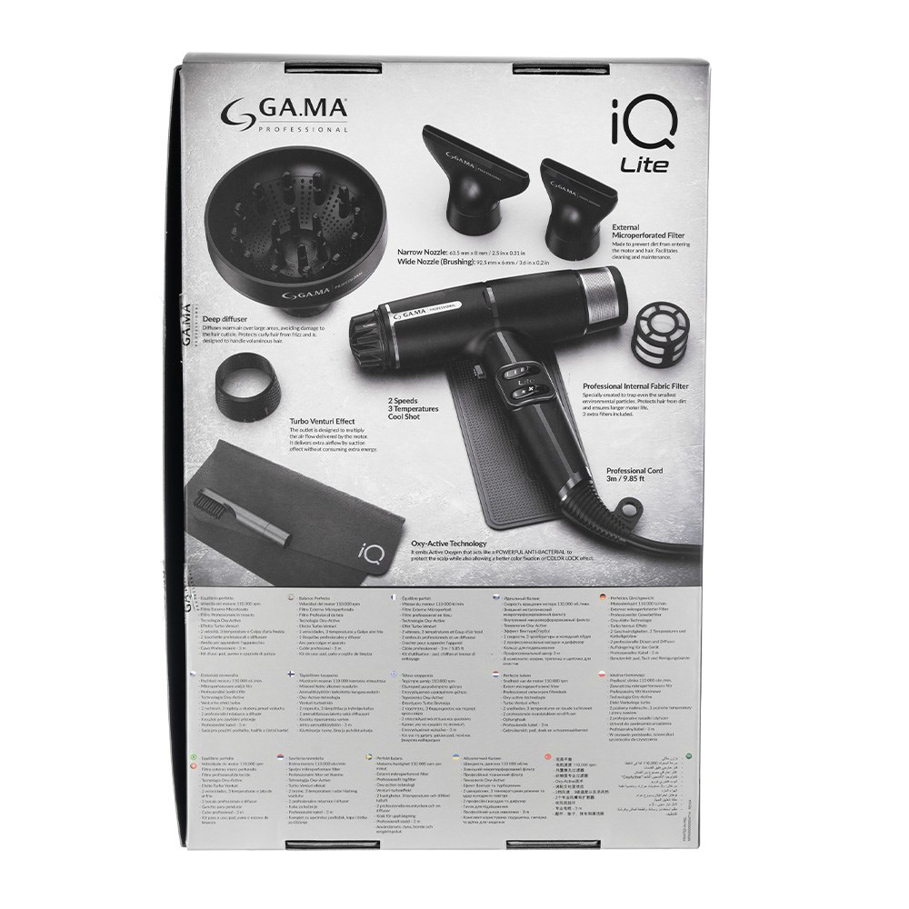 Italian elegance and technological innovation meld flawlessly in iQ Lite Perfetto Hair Dryer Black by GAMA Italy. This ultra-compact hair dryer is designed to deliver impeccable results with maximum comfort. The perfect hair dryer for home, you will experience cutting edge functionality with an incredibly light weight of only 316 grams. Next generation brushless motor with a powerful 110,000 rpm. Venturi Effect amplifies airflow without increasing energy consumption, dramatically reducing drying time. Oxy Active Technology with negative ions for silky, frizz-free and hydrated locks. 3 temperature / 2 speed settings plus a cold shot button