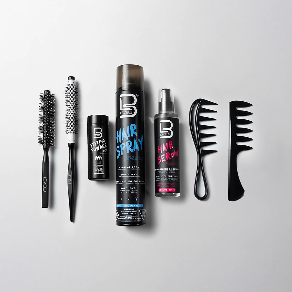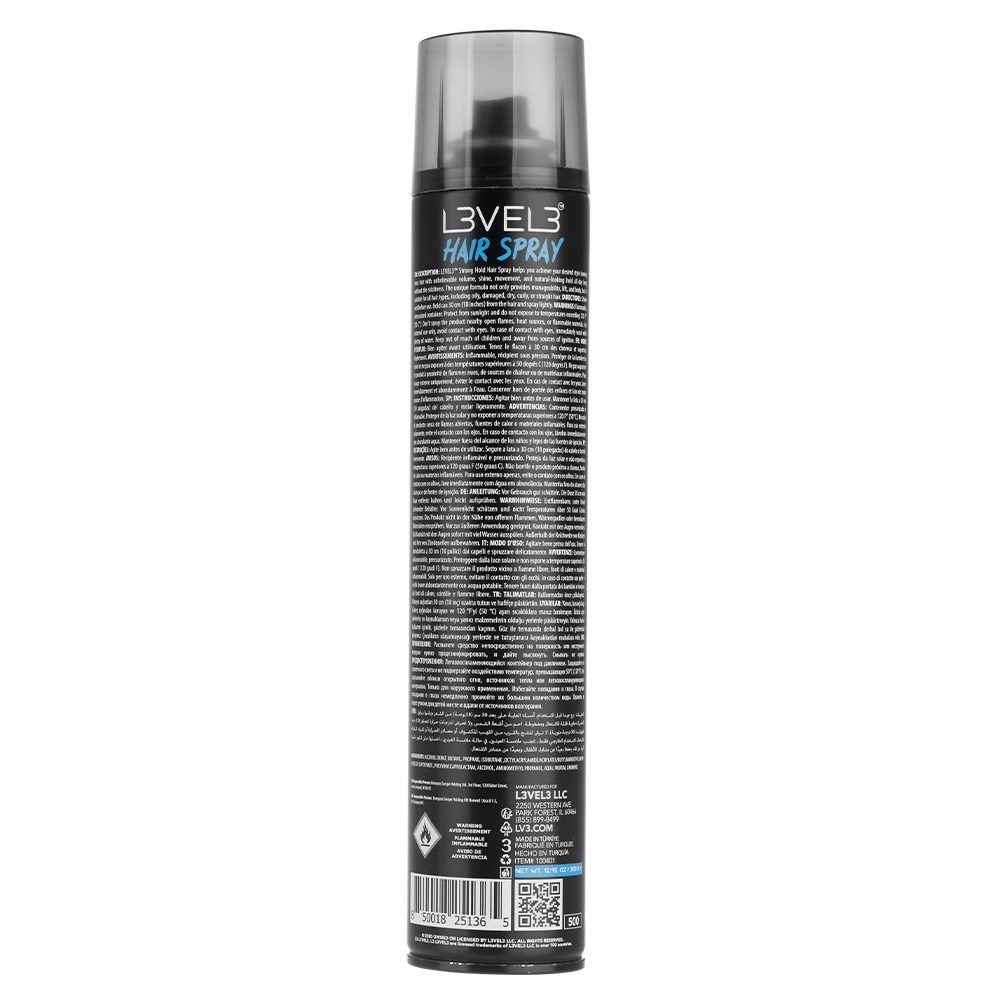 Hold it right there! L3VEL3 Hair Spray delivers unbelievable volume, shine, movement and, of course, all-day hold. Hair is secured in place without unwanted stickiness or stiffness. This unique formula not only provides manageability, lift and body, but is also suitable for all hair types and textures. Super hold with amazing wind resistance and humidity resistance. Fast drying, no-flake, no-residue, brushable formula. Level up.