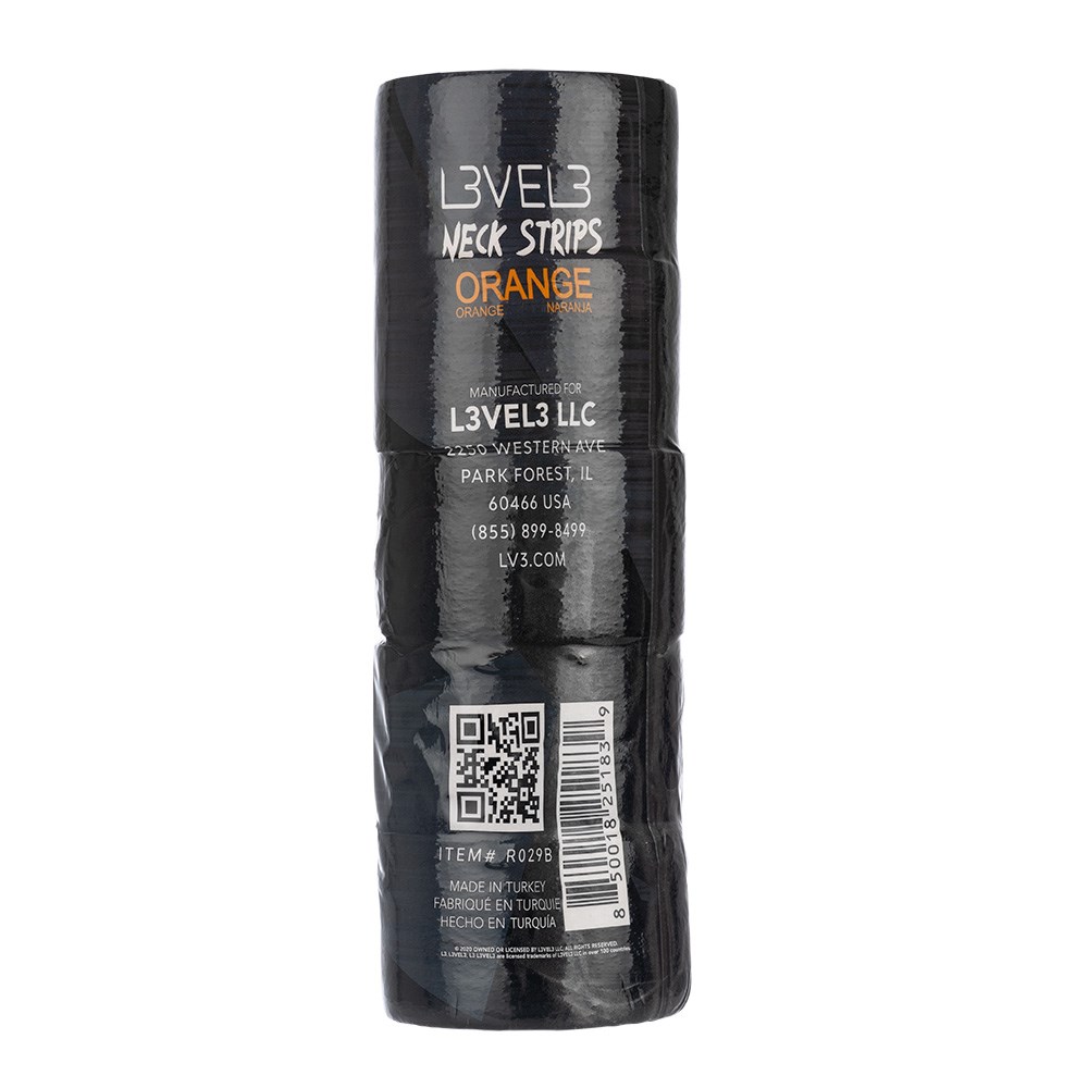 An extra layer of protection for clients. L3VEL3 Neck Strips Orange are disposable neck strips which are pre-cut and self-adhesive. The paper is stretchy for comfort, suiting all neck sizes. Prevent skin coming in contact with hair, liquids and dyes. Amazing value for premium, water resistant neck strips. Includes 5 rolls with 100 sheets per roll.