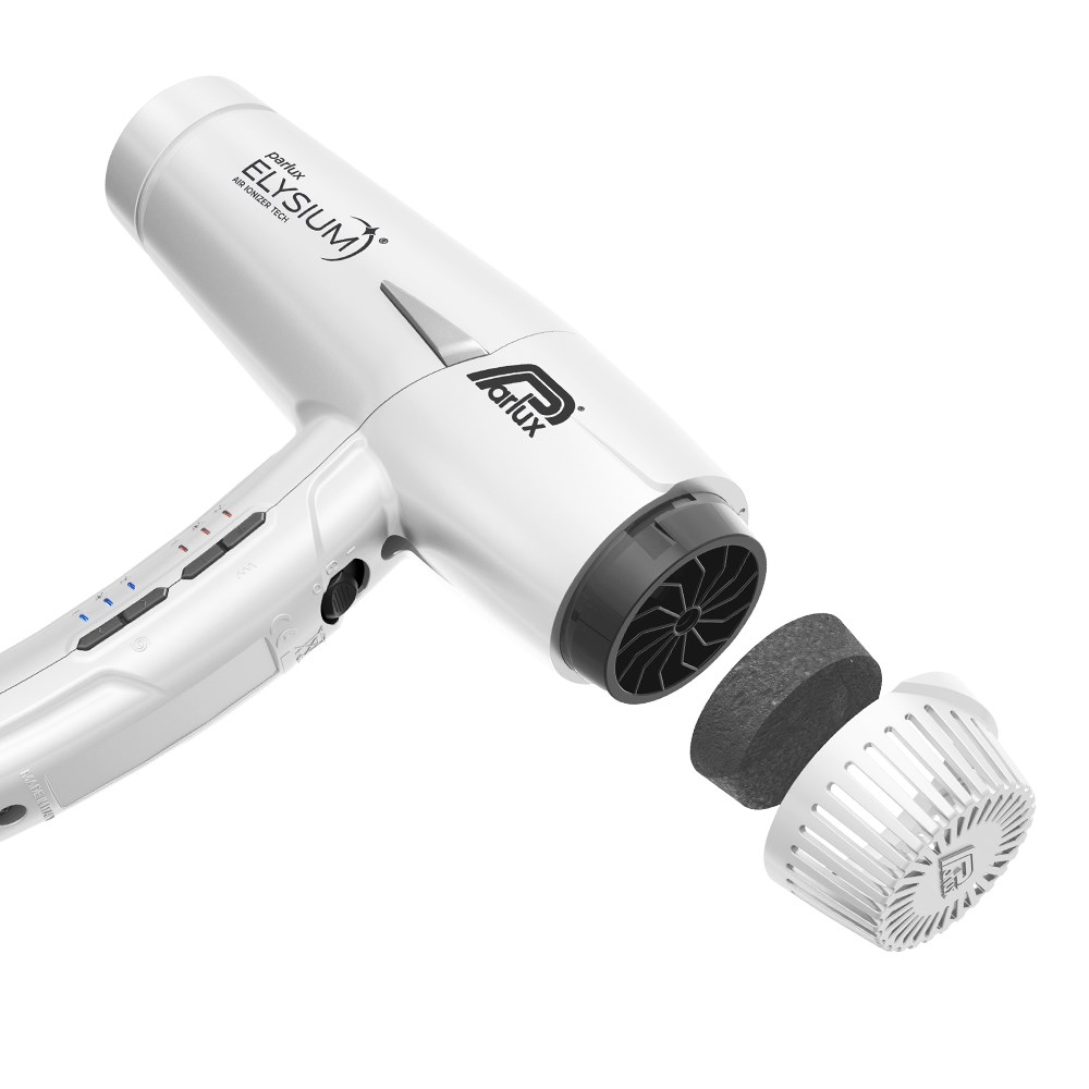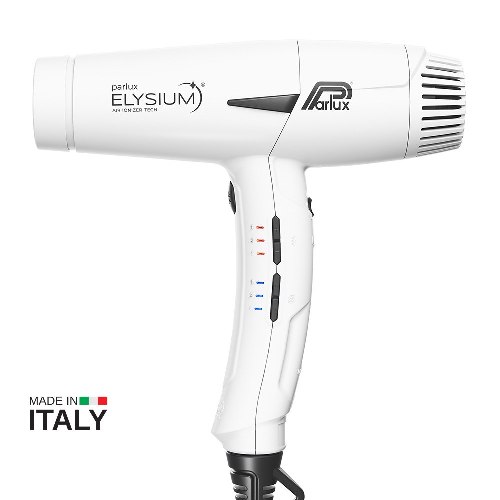 The first Parlux digital mini hair dryer. Designed to meet the needs of professionals, Parlux Elysium Hair Dryer White is a futuristic experience. Delivering outstanding reliability, Parlux Elysium Hair Dryer is small, light and powerful. Professional digital oversized mini-motor with a powerful 2,300 watts and 80m3/h airflow. 3 speed and 3 temperature settings for 9 versatile combinations. Air Ionizer Tech ionic technology for smoother, sleeker results. Lightweight and perfectly balanced with an ergonomic handle. Quick and easy cleaning with washable and replaceable sponge filter. Includes 3 concentrator nozzles, 2 of which are new AirFusion nozzles to optimise airflow for faster, more precise styling with enhanced shine. Made in Italy.