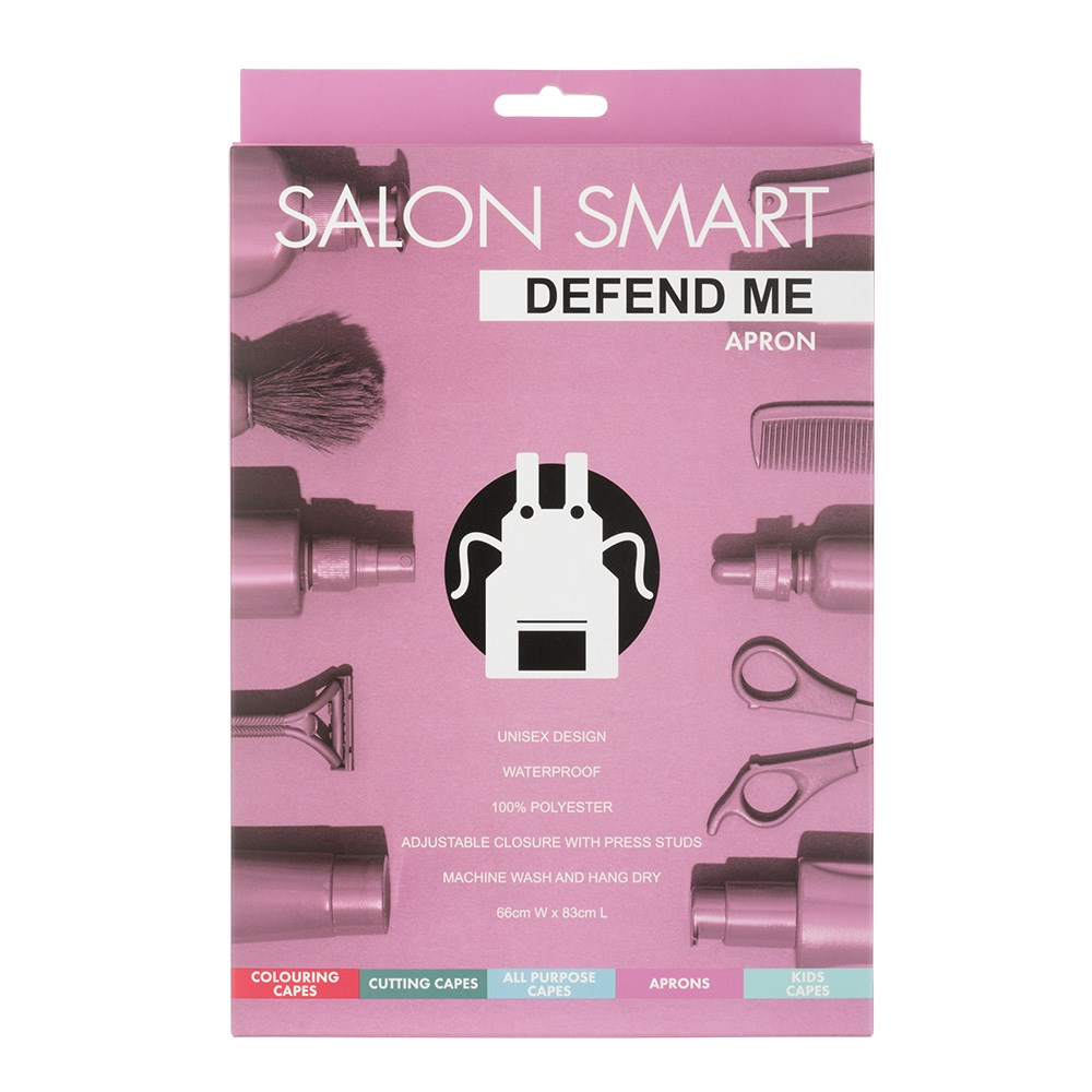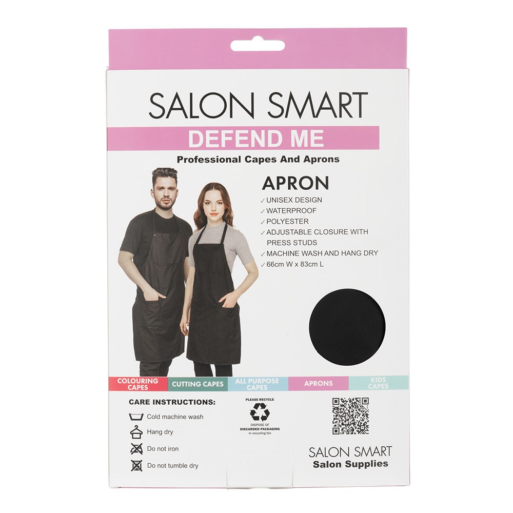 The smart (and stylish!) choice for aprons. Salon Smart Defend Me Apron is a water repellent, 100% polyester apron which keeps you comfortable and shielded for all hairdressing and barbering services. This lightweight, unisex design features an adjustable, easy tie waistband and adjustable neck band for the perfect fit.