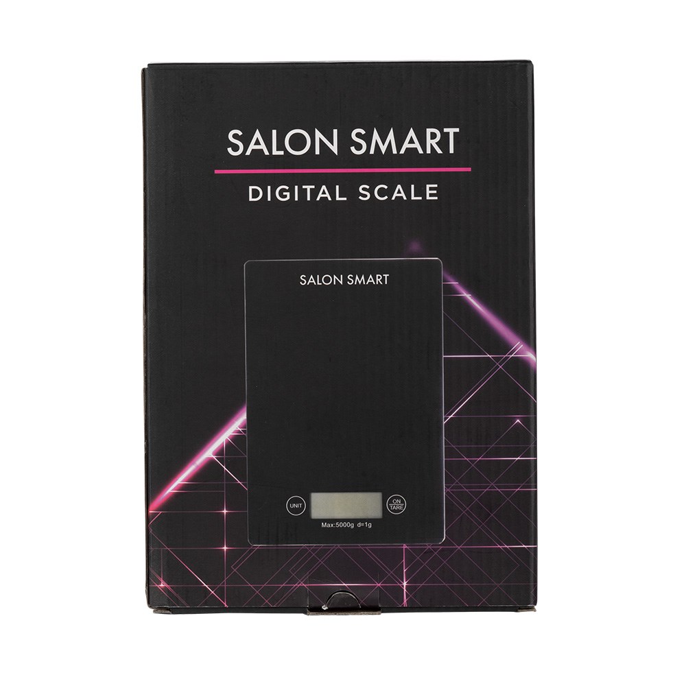No more guesswork. Precisely weigh and measure colour formulas with Salon Smart Digital Scale Black. Consistent colour control and less product waste. This sleek digital scale features an easy-to-read LCD display and 5000g weight capacity. Battery operated.