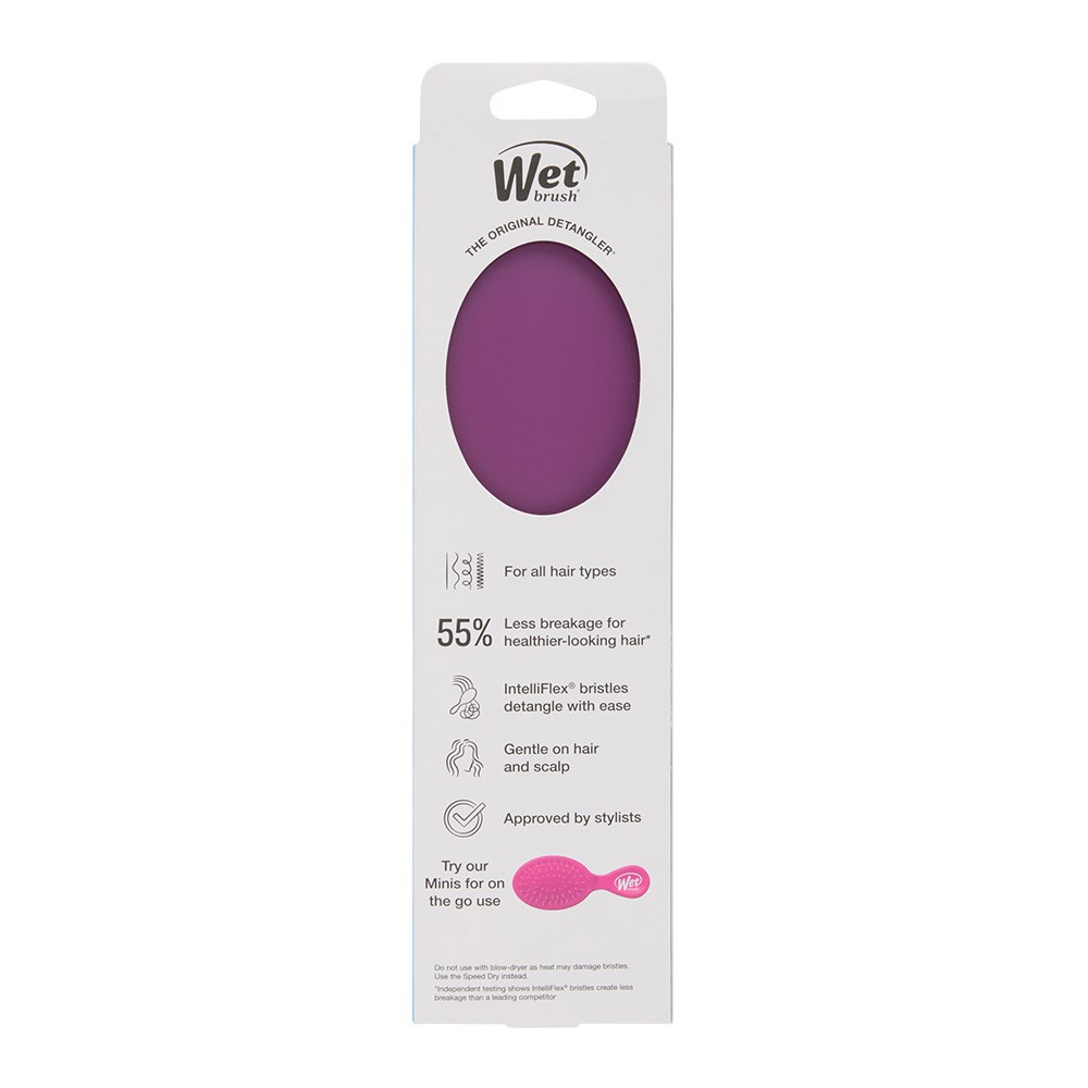 The original, award-winning brush which helps hair stay strong! WetBrush Frost Detangler Purple gently loosens knots on wet or dry hair without pulling or snagging. The moment you use it, you’ll feel the difference and never want to try another detangling brush again. Exclusive, ultra-soft IntelliFlex bristles glide through tangles on all hair types with ease. Minimise pain and protect against split ends and breakage. Brush with less force so you can detangle with less damage to hair. Go classic with Frost Detangler in Purple.