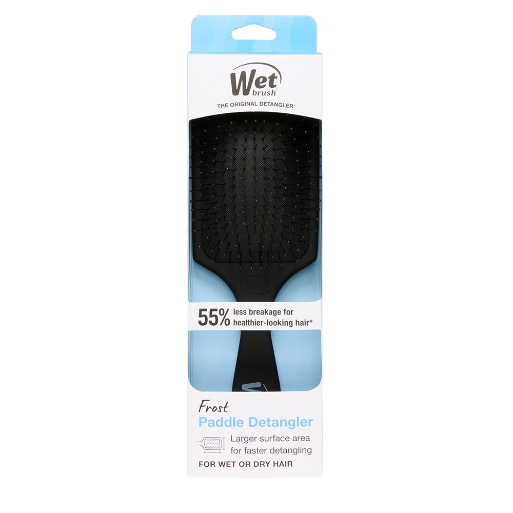 Meet the WetBrush Frost Paddle Detangler Black. Spread conditioning treatments and hair masks through hair with effortless ease. The vented design makes it easy for water and excess product to escape the brush, ensuring there’s no leftover build-up. Cleaning the brush is a breeze - just rinse and repeat. 20% larger surface area spreads treatments and masks evenly through hair. Also, adept at detangling, ultra-soft IntelliFlex bristles glide through tangles without pulling or breaking hair.