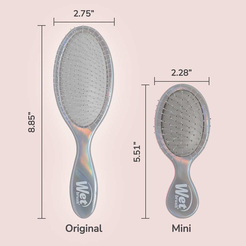 Detangling at home and on-the-go in a holographic dream. This limited edition WetBrush Holographic Detangler Kit Chrome includes the Original Detangler and a Mini Detangler. The world-famous, ultra-soft IntelliFlex bristles glide through tangles on all hair types with ease. The mini size is perfect for on-the-go. The moment you use it, you’ll feel the difference and never want to try another hairbrush again. Add some shine to your day with this limited edition Duo Kit.