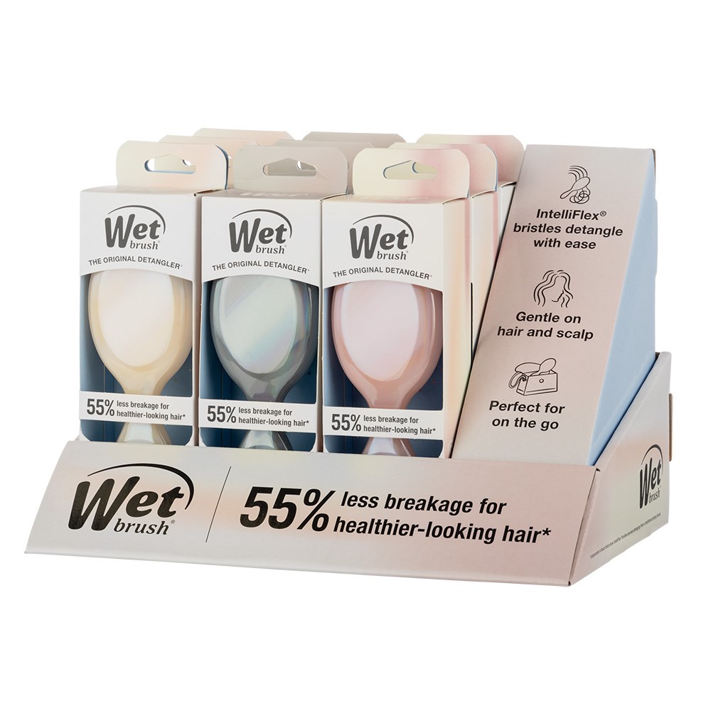 This WetBrush Mini Holographic Detangler Display is decorated in shining iridescent colours. Gently loosen knots on wet or dry hair, without pulling or snagging. Exclusive, ultra-soft IntelliFlex bristles glide through tangles on all hair types with ease. The mini size is perfect for on-the-go. This display box is a great collection for anyone.
