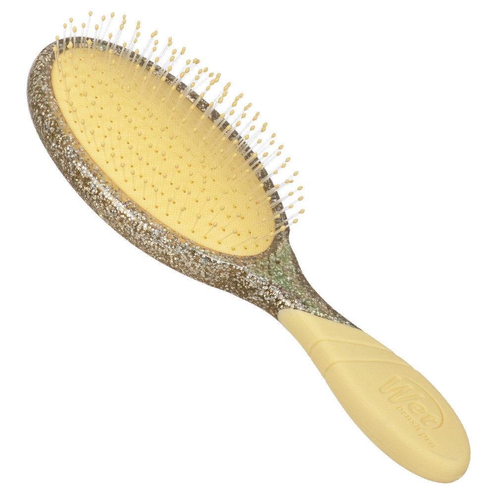 WetBrush turns 20! WetBrush Pro Birthday Celebration Detangler Yellow features a limited edition, sparkling pastel design. This is the world famous, award-winning Original Detangler redesigned by stylists for stylists. Revolutionary IntelliFlex bristles diffuse knots on all hair types, wet or dry, gliding through tangles with less effort, less pain and over 45% less breakage**. Ergonomically advanced with finger rests and rubberised EasyGrip handle for more comfort and control.