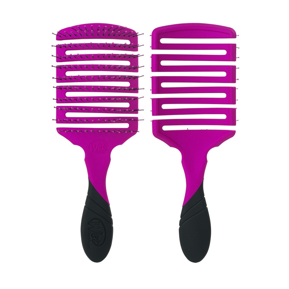 The innovative way to speed up blow-drying time. WetBrush Pro Flex Dry Paddle Hair Brush Purple features an open, flexible vented design to allow moisture to be removed from hair faster. Clever OmniFlex brush head flexes in every direction to contour to the scalp. With heat resistant HeatFlex bristles and an ergonomically advanced design, Wet Brush Pro Flex Dry vent brush is designed by hairstylists for hairstylists.