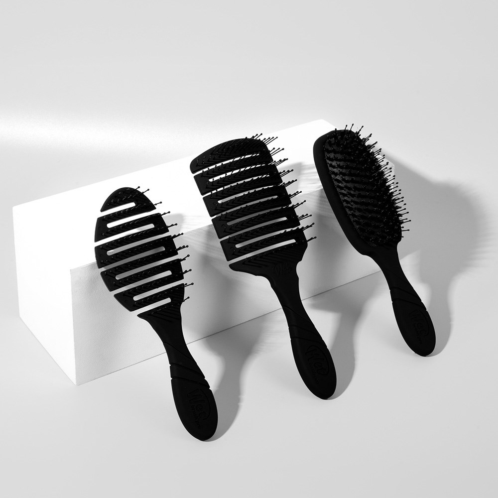 Stylists’ fave way to faster hair drying. WetBrush Pro Frost Flex Dry Paddle Detangler Black features a flexible vented paddle design to speed up dry time while contouring to the scalp for comfort. HeatFlex bristles are heat resistant and safe to use with a blow-dryer. OmniFlex brush head flexes in every direction to contour to scalp. This hair brush has a 20% larger surface area for faster styling.
