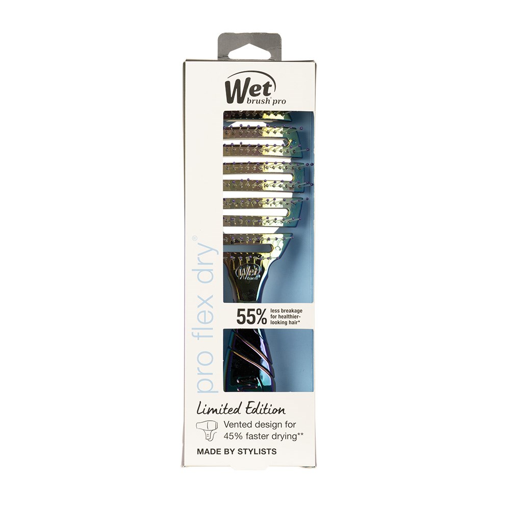 This WetBrush Pro Holographic Flex Dry Display is decorated in shining iridescent colours. With a vented design to cut down blow-dry time and an ultra-flexible OmniFlex head that hugs the scalp in every direction. The HeatFlex bristles are blow-dryer safe and glide through tangles like a breeze.