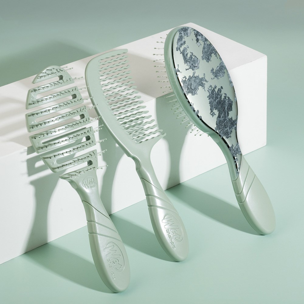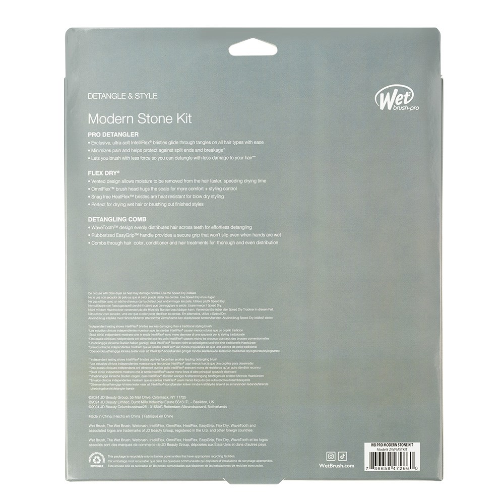 Essentials for stylish detangling with less pain, effort and breakage. WetBrush Pro Modern Stone Kit includes the Pro Detangler in a chic marble inspired print, Flex Dry and Detangling Comb. Pro Detangler’s exclusive, ultra-soft IntelliFlex bristles glide through tangles on all hair types, while heat resistant, snag-free Flex Dry’s vented design speeds up blow-drying time. Wet Brush Detangling Comb features a WaveTooth design to evenly distribute hair across teeth for effortless detangling.