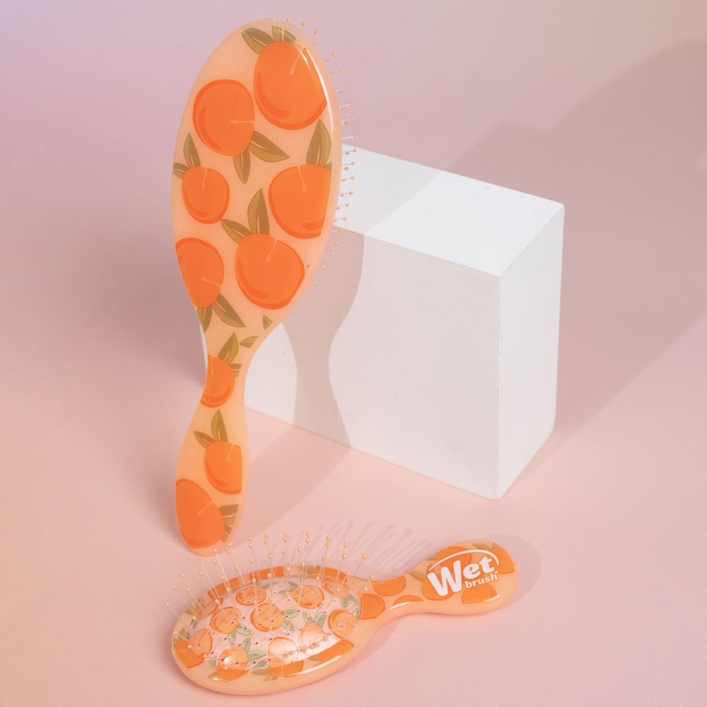 Sweetly detangle with this adorable on-the-go brush! WetBrush Tutti Fruitti Mini Detangler Peach helps hair stay strong and healthy-looking. Gently loosen knots on wet or dry hair, without pulling or snagging. Exclusive, ultra-soft IntelliFlex bristles glide through tangles on all hair types with ease. The moment you use it, you’ll feel the Wet Brush difference and never want to try another hairbrush again. Kids love it too! Limited edition in Peach.