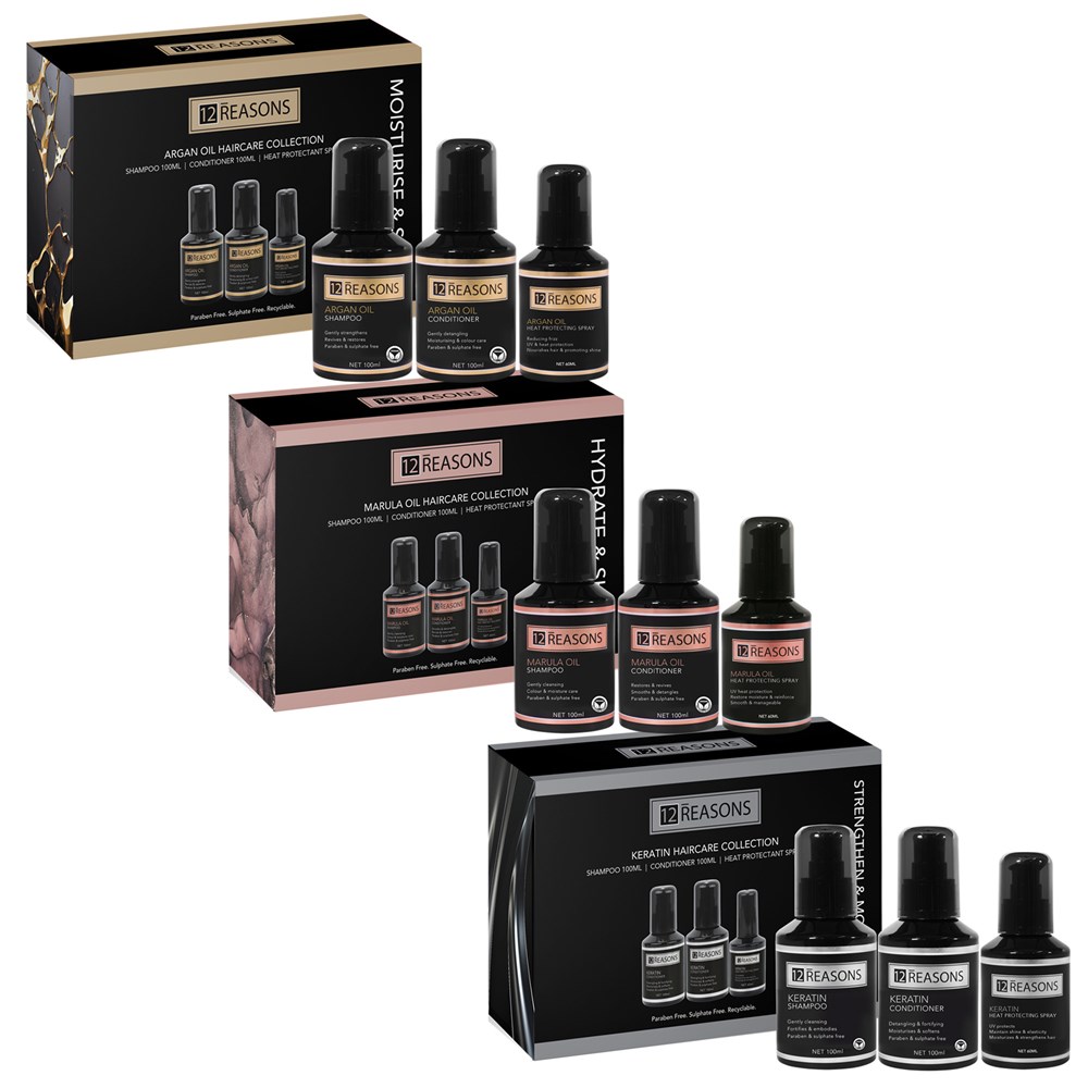 Love travel with 12Reasons! 12Reasons Keratin Travel Pack makes travel beautiful with three travel-sized products. Restore strength and shine while adding softness. Hair is left fortified and repaired. Dry, damaged hair is transformed, shining with nourishment. Enriched with keratin, macadamia oil and avocado oil for the best of nature. Free from parabens and sulphates. Colour-safe. Vegan. Not tested on animals. Designed and formulated in Australia.