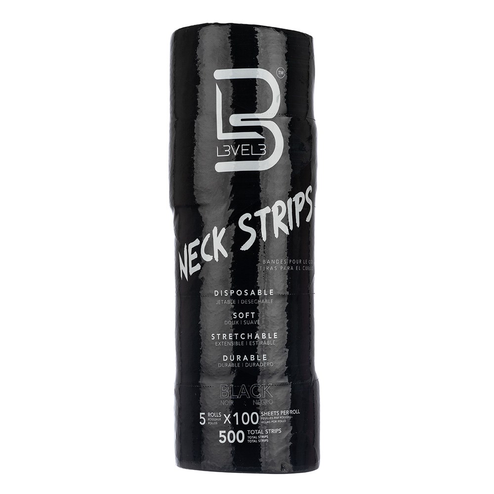 An extra layer of protection for clients. L3VEL3 Neck Strips Black are disposable neck strips which are pre-cut and self-adhesive. The paper is stretchy for comfort, suiting all neck sizes. Prevent skin coming in contact with hair, liquids and dyes. Amazing value for premium, water resistant neck strips. Includes 5 rolls with 100 sheets per roll.