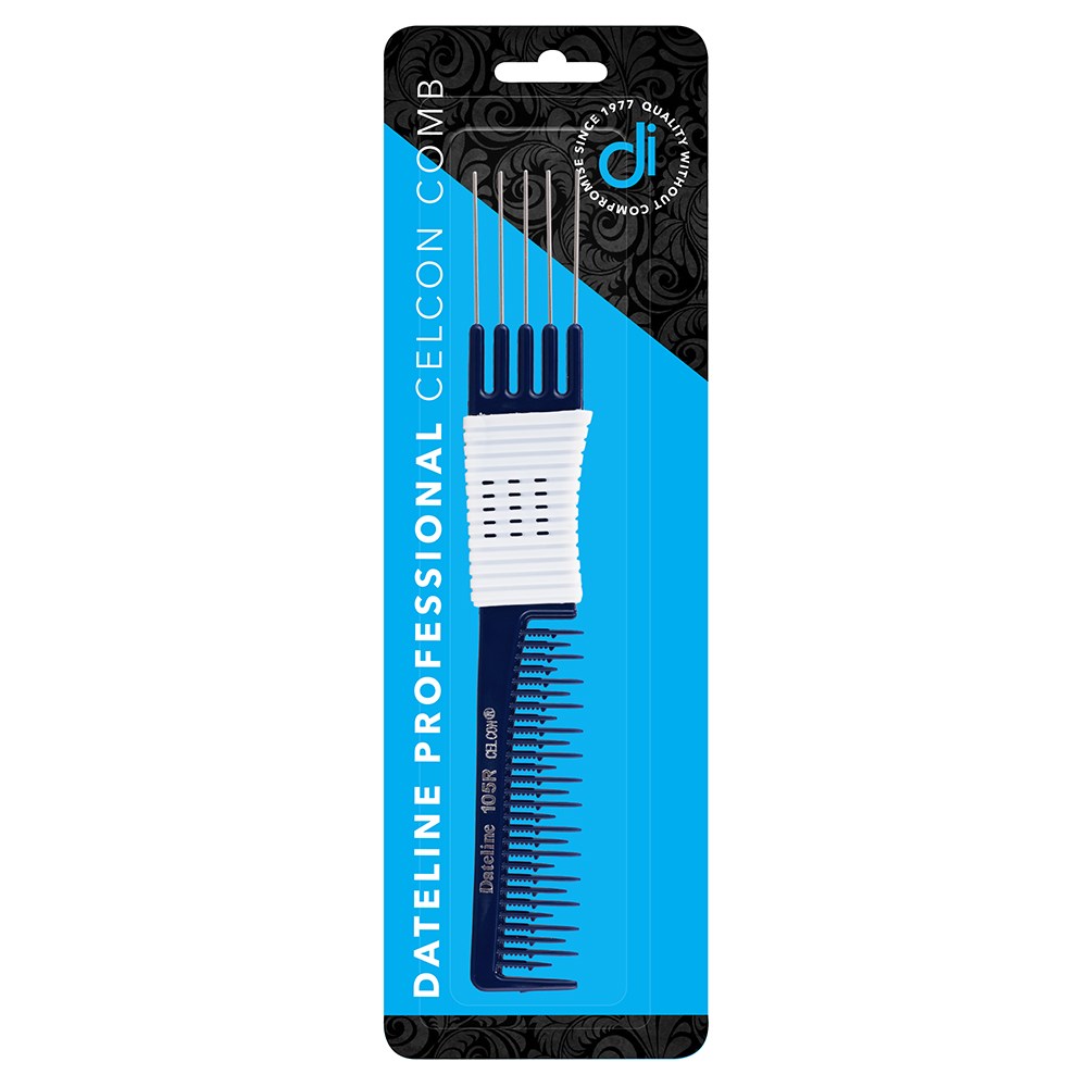 The Dateline Professional Blue Celcon Teasing Comb provides professional performance at a fraction of the cost! This heat-resistant, strong and flexible comb features a non-slip grip handle and super-smooth teeth to ensure no snagging or pulling. Ideal for teasing and lifting hair for backcombing or to add volume.