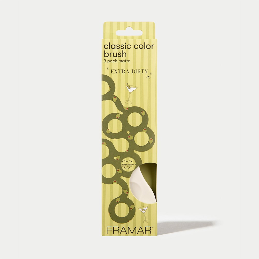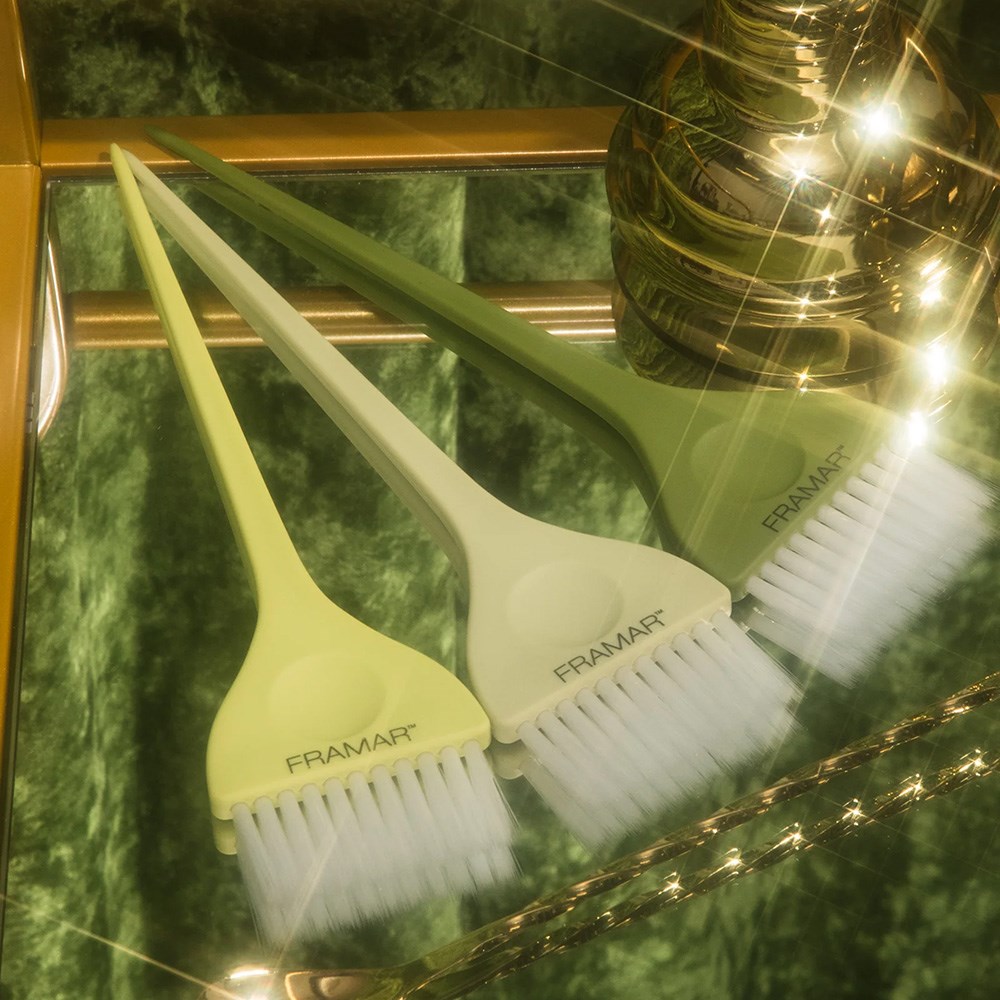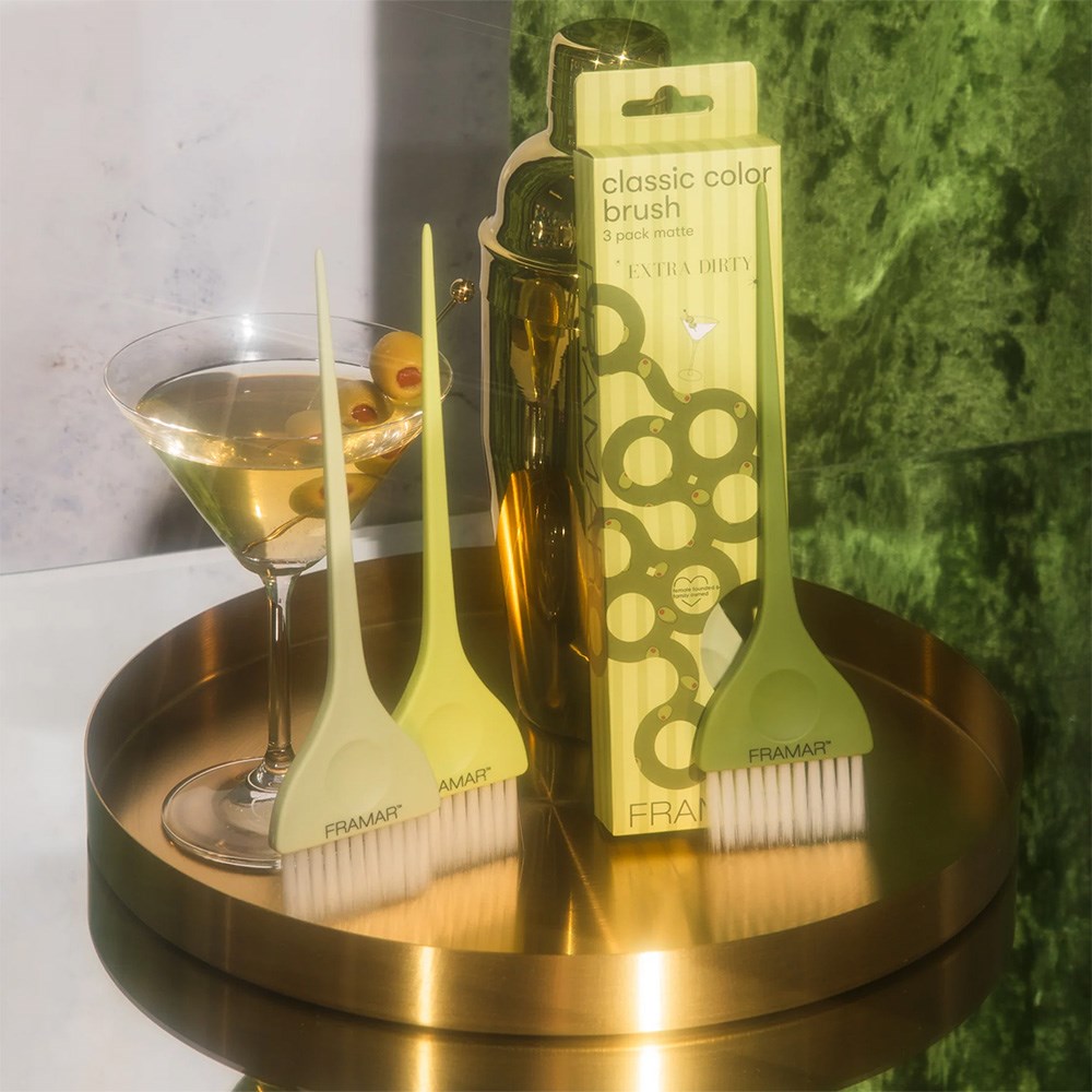 It’s happy hour for highlights! Framar Classic Colour Tint Brush Set Extra Dirty features three original Framar colour brushes. In three matte colours from stunning olive green to cream, this multipurpose brush set is an instant classic and an undeniable favourite. Framar’s famous AccuSoft bristles are tapered to pick up and distribute colour to hair evenly, quickly and precisely. Ideal for root touch-ups, balayage and full colour applications.