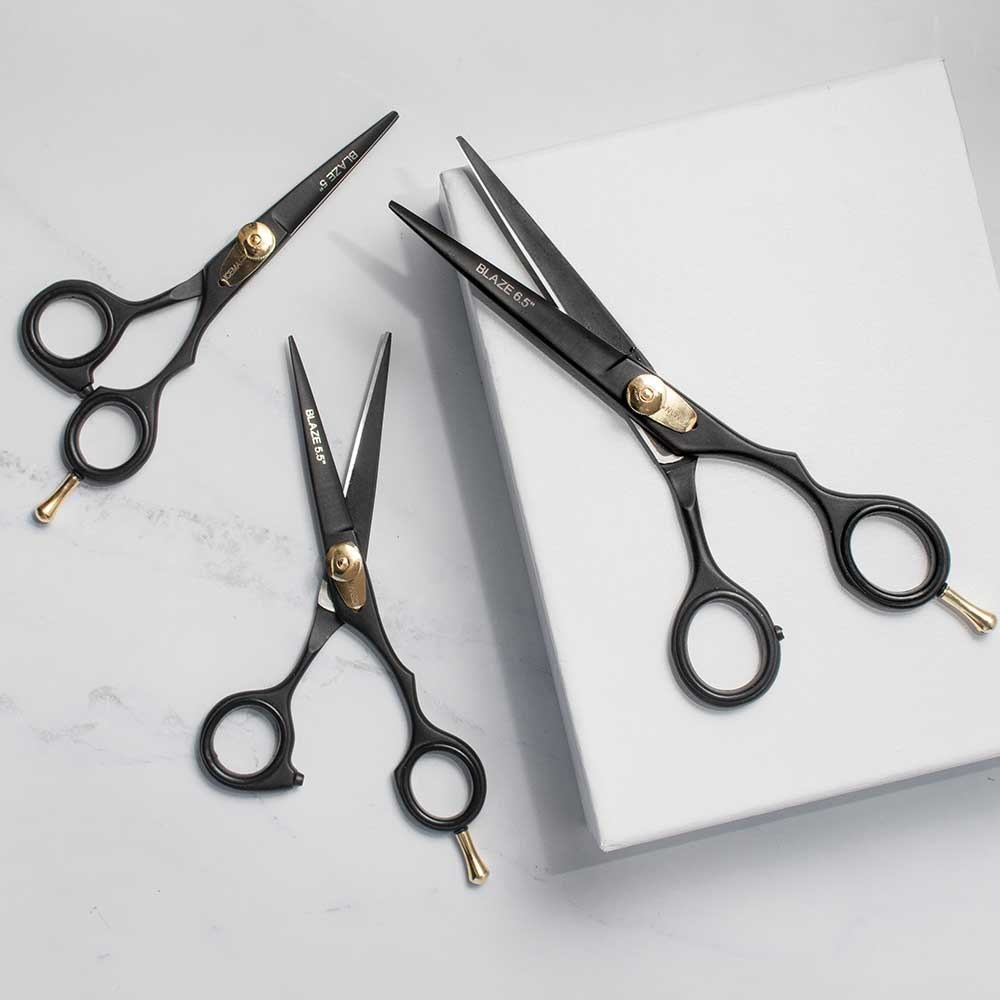 Iceman’s chicest scissors ever. In all black with gold detailing, Iceman Blaze 5.5” Black Hairdressing Scissors feature hand-honed stainless steel blades for truly exceptional cutting performance. A great choice for precision work, these scissors have superb ergonomics with a level set handle, removable finger rest and adjustable, raised tension dial. Ideal scissors for apprentices or a backup pair for your hairdressing kit.