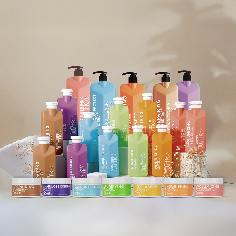 Just beautiful hair… for everyone! For every hair type and texture, there’s an affordable JustK solution. From frizz to fade to flat, Just K fixes the rainbow. Bright inside, bright outside – JustK is clever haircare which works as well as it looks. These are salon-problem formulas, enriched with nourishing ingredients, which solve all the problems of the hair rainbow. Good haircare becomes accessible. Choose from Volumising, Nourishing, Curl & Shine, Purifying, Colour Protect, Repairing and Hair Loss Control. Beautiful hair is affordable with JustK!