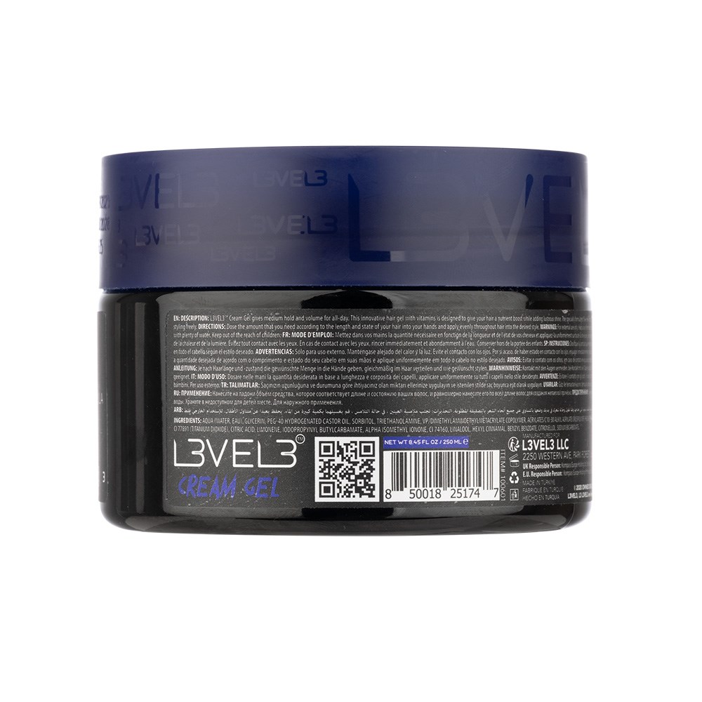 Level up. L3VEL3 Cream Hair Gel 250mL stands out for its ability to nourish and protect hair while providing perfect hold and shine. The vitamin B5-enriched formula helps boost hair texture, enhance volume and deliver medium hold without flakes or residue. Whether shaping a classic, polished style or adding definition to curls, this cream gel gives the flexibility, control and shine you crave. LEVEL 3 is by the artist for the artist, aiming to reinvent the barbering industry with high calibre products without the high price. Men’s haircare and grooming designed to shake up the industry.