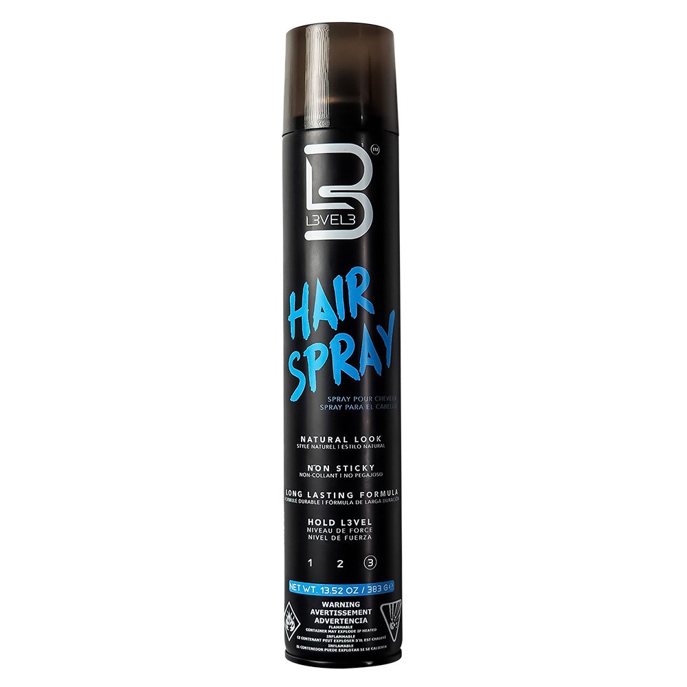 Hold it right there! L3VEL3 Hair Spray delivers unbelievable volume, shine, movement and, of course, all-day hold. Hair is secured in place without unwanted stickiness or stiffness. This unique formula not only provides manageability, lift and body, but is also suitable for all hair types and textures. Super hold with amazing wind resistance and humidity resistance. Fast drying, no-flake, no-residue, brushable formula. Level up.
