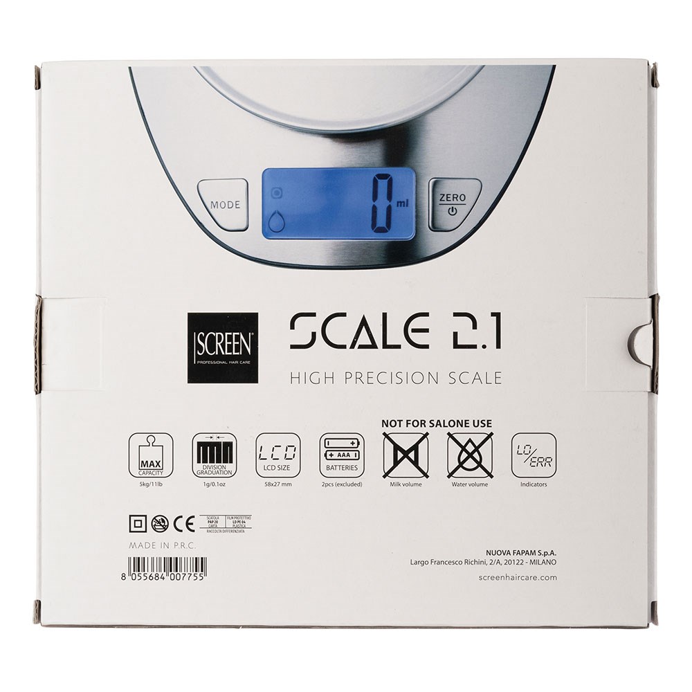 Screen High Precision 2.1 Scale Silver precisely weighs and measures colour formulas. With a maximum capacity of 5kg and increments of 1g, this scale helps to maximise colour control and minimise waste. LCD display with battery power indication. High precision strain gauge sensor.