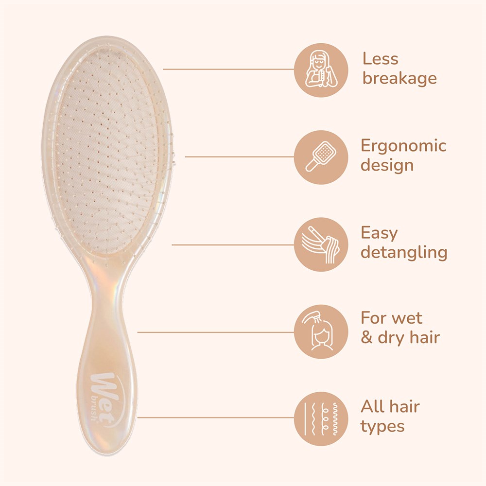 Detangling at home and on-the-go in a holographic dream. This limited edition WetBrush Holographic Detangler Kit Cream includes the Original Detangler and a Mini Detangler. The world-famous, ultra-soft IntelliFlex bristles glide through tangles on all hair types with ease. The mini size is perfect for on-the-go. The moment you use it, you’ll feel the difference and never want to try another hairbrush again. Add some shine to your day with this limited edition Duo Kit.