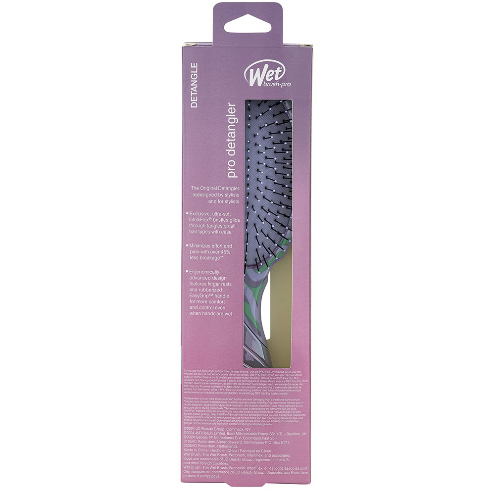 When detangling becomes a sweet delight! WetBrush Pro Vintage Sweets Detangler Purple features a limited edition, sweetly whirling design in pastel iridescence. This is the world famous, award-winning Original Detangler redesigned by stylists for stylists. Revolutionary IntelliFlex bristles diffuse knots on all hair types, wet or dry, gliding through tangles with less effort, less pain and over 45% less breakage. Ergonomically advanced with finger rests and rubberised EasyGrip handle for more comfort and control.